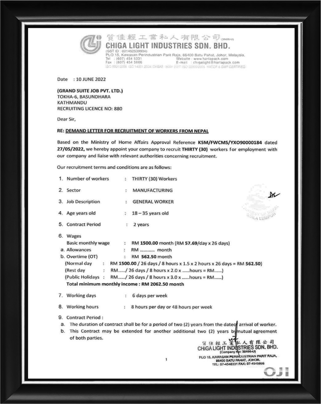 Chinga light industries son. bhd